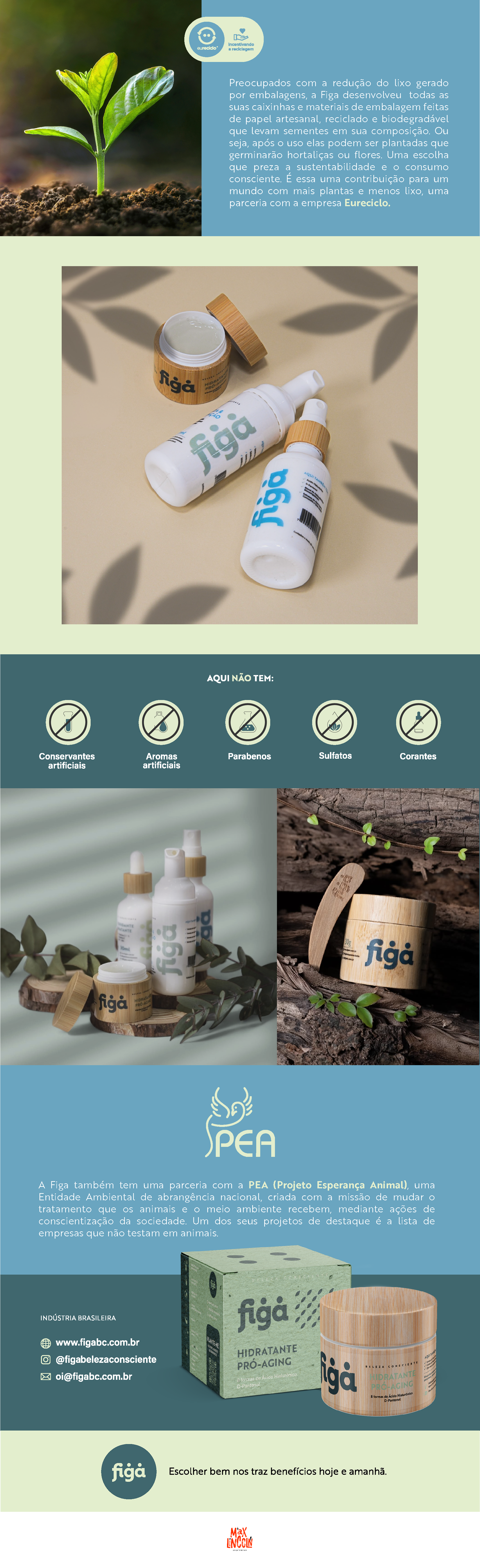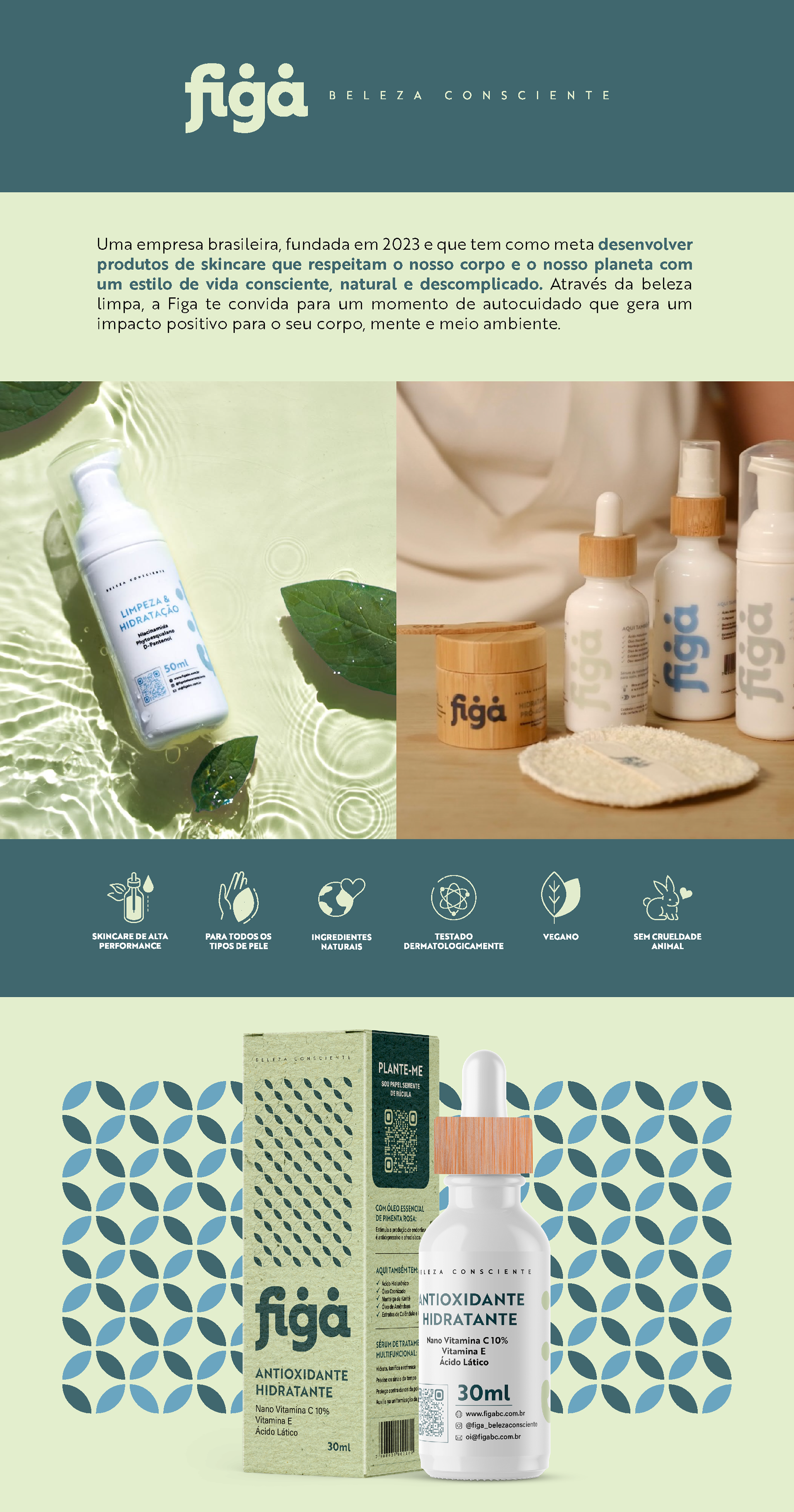 Desenvolvimento dos rótulos para as embalagens primárias (potes e vidros) e secundárias (caixinha) para Figa, a marca de produtos de skincare sustentável e consciente.